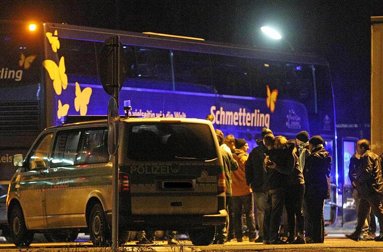 Die Fahrgäste des ersten Busses wurden da bereits angegriffen. Die Fans wollten gerade aussteigen, als die Attacke startete. Auch die Beamten der ersten Streife, die laut Polizeisprecher zehn Minuten nach der ersten Alarmierung am Tatort eintrafen, wurden angegriffen.