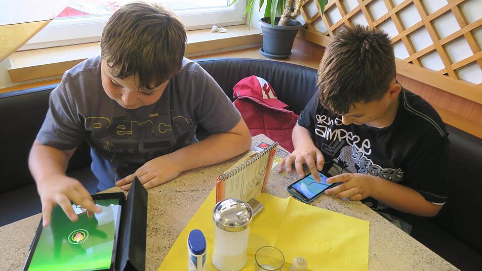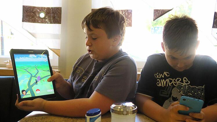 Danach machen sie eine Eispause und dann geht's weiter. Man könne ja im Shop was kaufen, zum Beispiel Pokémon-Münzen und Lockmodule, aber das machen die beiden Jungs aus Adelsdorf nicht.