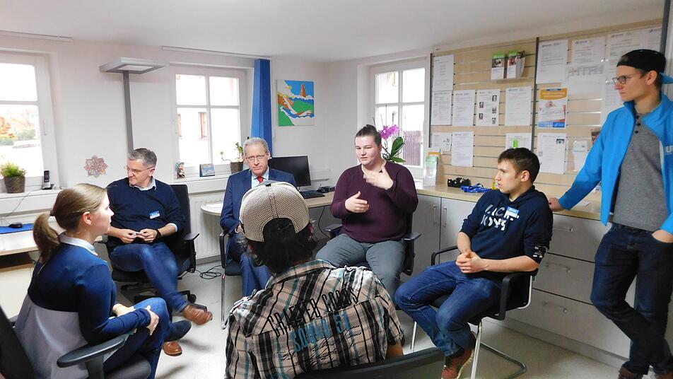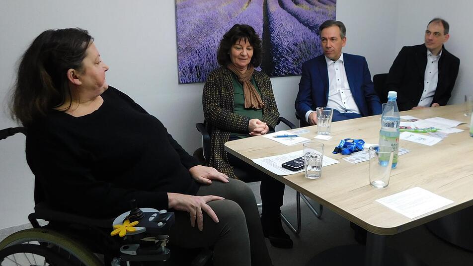 Die erste Station war die Lebenshilfe Herzogenaurach, wo in drei Gruppen die verschiedenen Einrichtungen und Angebote zur Betreuung und Unterstützung vorgestellt wurden. Martina Stamm-Fibich und Alexander Tritthart beschäftigten sich mit ambulant unterstütztem Wohnen (AUW), Regina Enz und Manfred Bachmayer nahmen am Gespräch zur Freizeitassistenz teil und Nicolas Bischoff informierte sich über das stationäre Wohnen, wo sich auch Bürgermeister German Hacker dazusetzte.