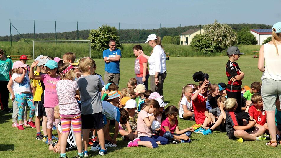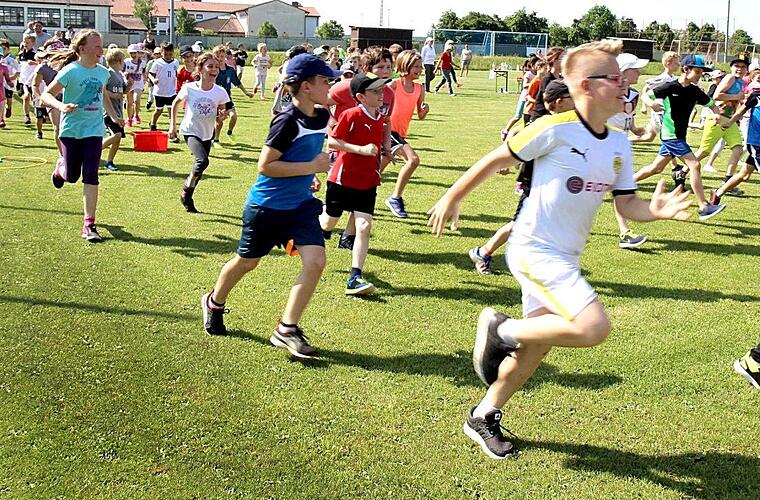 Die Grundschüler wurden auf dem Sportplatz vom Schulleiter Alfred Sammetinger und Bürgermeister Klaus Schumann (ÜWB) begrüßt und angesichts der sommerlichen Temperaturen daran erinnert, dass sie möglichst viel trinken sollen. "Mit jeder Runde sorgt ihr dafür, dass es Kindern ein Stück besser geht", erklärte der Schulleiter in seiner Ansprache. Bevor Martin Grau den Startschuss gab, bat er die Kinder, den Lauf langsam angehen zu lassen, denn nicht das Tempo sei entscheidend, sondern die Zahl der Runden.