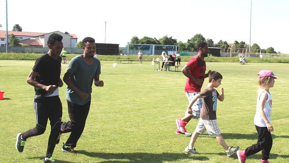 Aurachtaler Grundschüler haben sich am Lauf gegen den Hunger beteiligt. Unterstützt wurden sie vom Leichtathleten Martin Grau und einigen Flüchtlingen.
