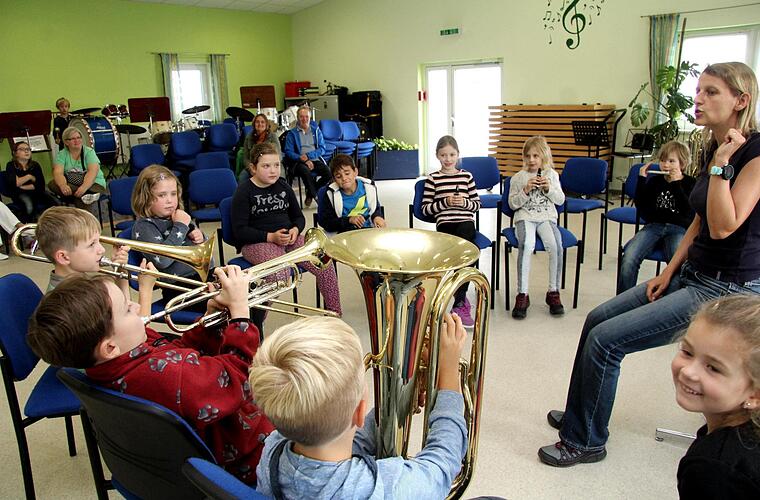 Mit Querflöte, Klarinette, Posaune, Trompete und Euphonium sowie Schlagzeug starteten die "Schnupperkinder" ihre erste Probe. "Im Vordergrund steht einfach, dass die Kinder die Musik mit allen Sinnen erleben dürfen", freute sich Christine Pölloth. Die Kinder konnten währenddessen die Instrumente ausprobieren und schauen, welches Instrument ihnen am besten gefällt oder liegt.