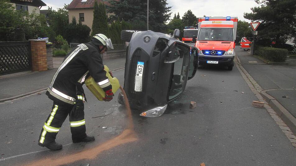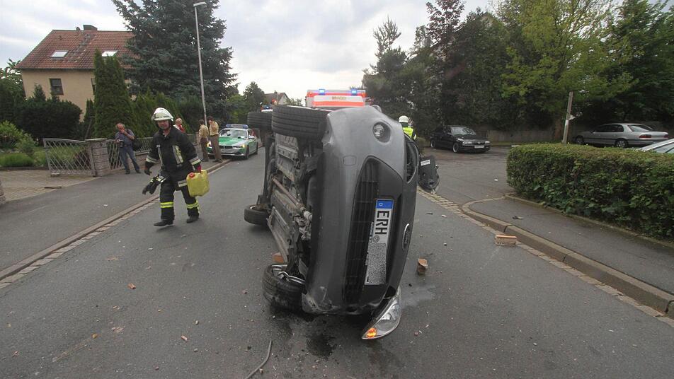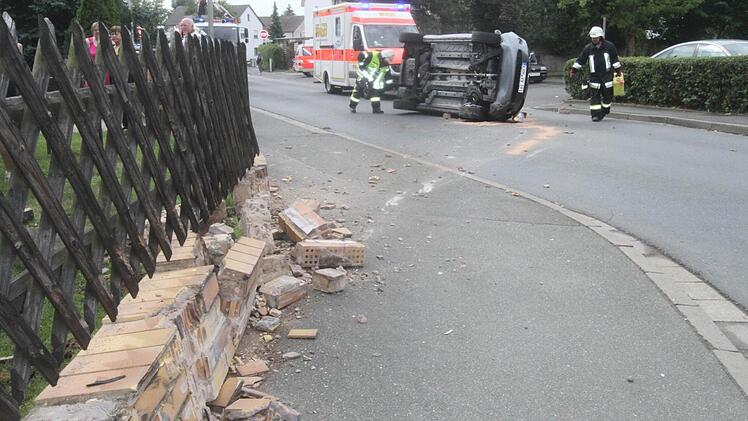 Zeugen berichteten der Polizei von einer unsicheren Fahrweise. Diese endete an einer Mauer und einem auf der Seite liegendem Fahrzeug.
