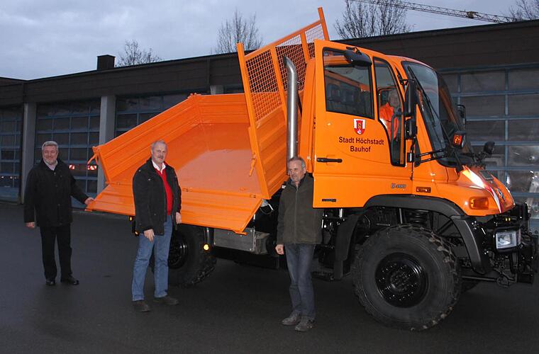 Der mittelgroße Unimog vom Typ "U 400" soll zwei alte Unimogs ersetzen, die seit 23 und 24 Jahren bei der Stadt im Einsatz sind und beide schon knapp 300 000 Kilometer auf dem Tacho haben. Deren Laufzeiten sind schon überdurchschnittlich lange, gestand Otto Hoyer vom Lieferanten ein. Für Bürgermeister Gerald Brehm (JL) sind lange Laufzeiten bei städtischen Fahrzeugen nichts Außergewöhnliches. "Wir fahren, bis sie nicht mehr wirtschaftlich sind", sagt der Bürgermeister, der sich von seinem vom Vorgänger übernommenen Dienstwagen erst trennte, als der TÜV den alten 7er BMW aus dem Verkehr zog.