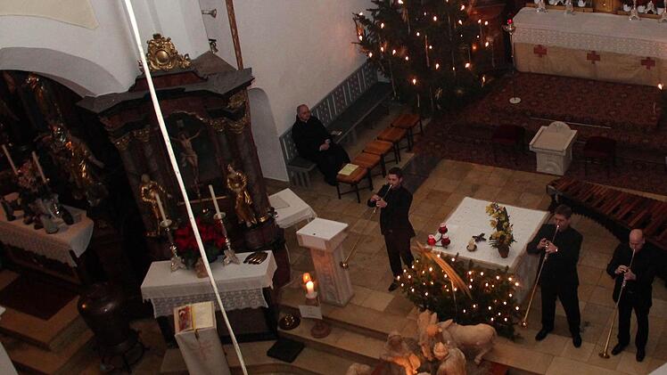 Beeindruckend war das Stück "Pastime with good company" - ein stimmungsvoller Einstieg in das Konzert. Im dunklen, nur von den Weihnachtskerzen beleuchteten Altarraum ertönte die Landsknechtstrommel. Nach und nach gesellten sich die Langtrompeten dazu.