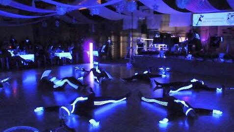 Neben den tänzerischen Showeinlagen war der Auftritt der Sechser-Einradfahrerinnen der Soli Herzogenaurach der Höhepunkt des Abends. Mit "Dancing Wheels", einer Schwarzlichtshow, begeisterten die jungen Frauen die Besucher und rissen diese zu Beifallsstürmen hin.