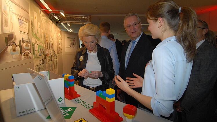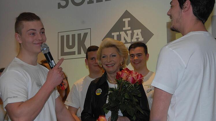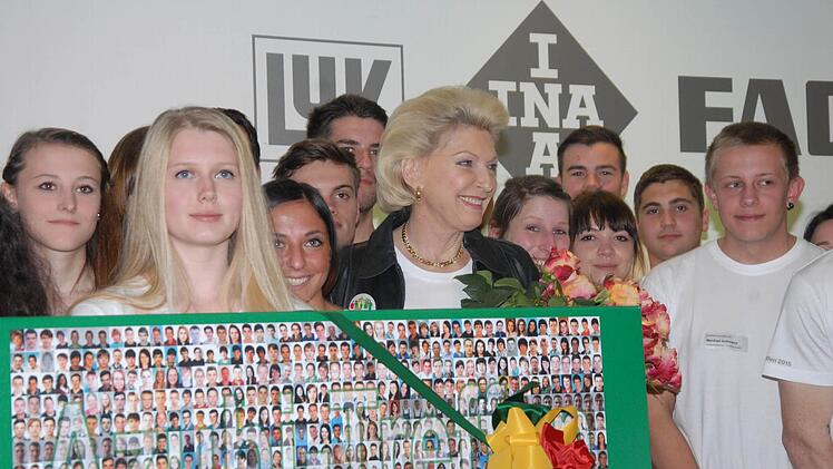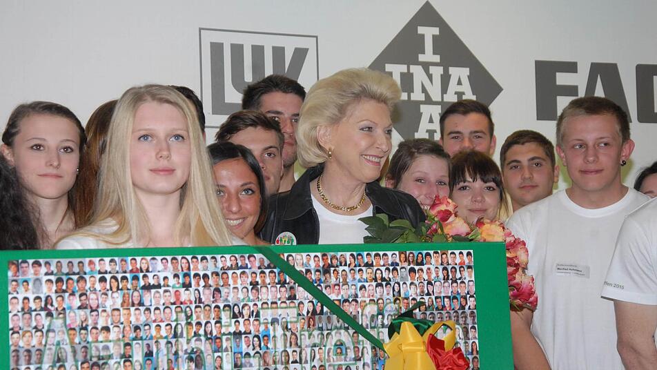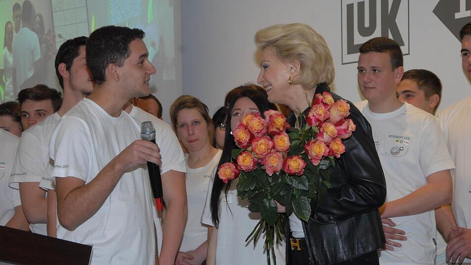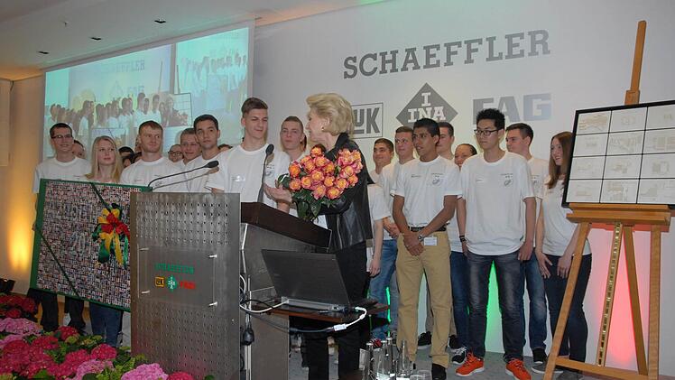 Spätestens, als die jungen Leute aus den einzelnen Ausbildungswerken auf die Bühne kamen und ihrer Chefin Rosen und Geschenke überreichten, versehen mit einem ebenso dankbaren wie auch meist flotten Spruch, spätestens dann war auch Maria-Elisabeth Schaeffler-Thumann gerührt. "Herr Minister, das ist Familie", rief die Gesellschafterin der Schaeffler-Gruppe mit Blickrichtung auf die versammelten Politiker mit Joachim Herrmann (CSU) an der Spitze.