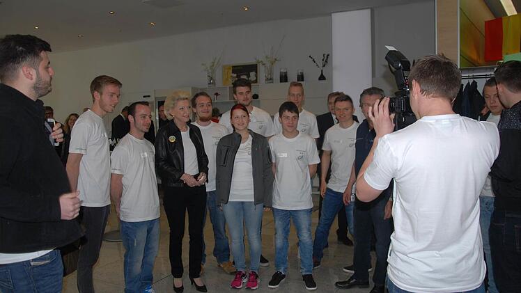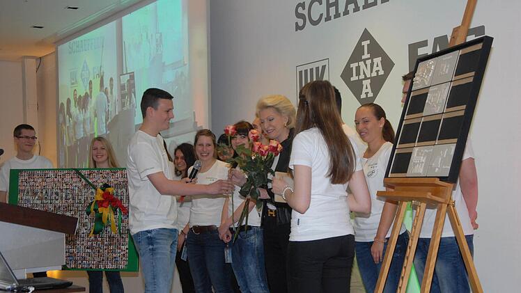 Die Schaeffler-Auszubildenden aus aller Welt bedankten sich bei ihrer Chefin mit Rosen und Geschenken und verdeutlichten das Bild von der großen Familie. Innenminister Herrmann lobte die Aktion als ein klares Zeichen für den Standort Herzogenaurach.