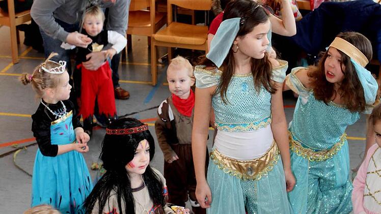 Alles, was im Märchenland Rang und Namen hat, tummelte sich auf dem Parkett. Die Jüngsten von der Mama toll geschminkt, der Schnuller musste sein, wussten sich zwischen den etwas größeren Kindern schon zu behaupten und sammelten fleißig Süßigkeiten.