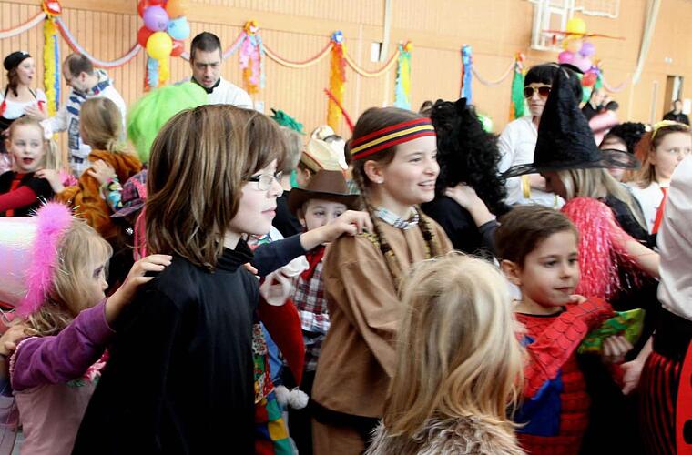Damit die Kinder in Bewegung blieben, gab es Tänze und die beim Fasching unvermeidliche Polonäse, bei der die Löcher aus dem Käse fliegen.