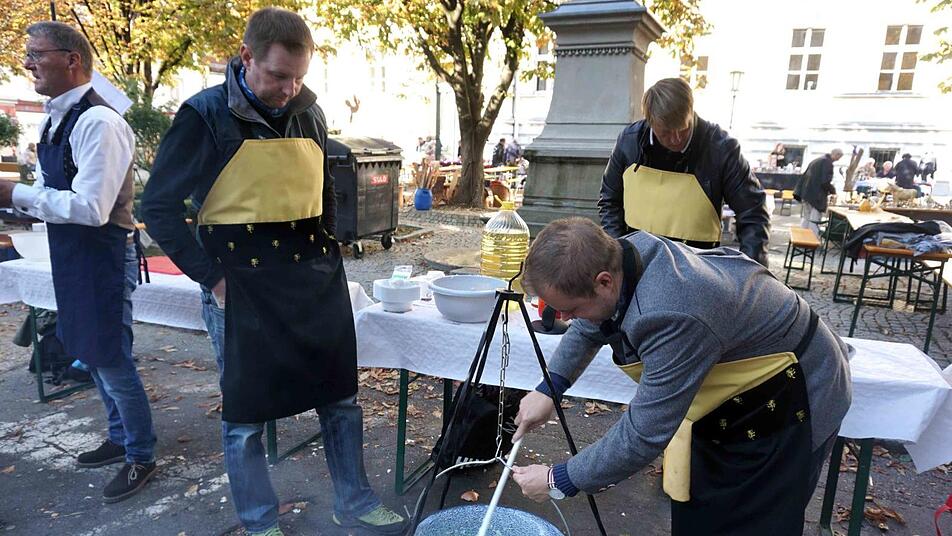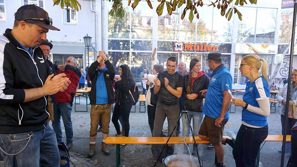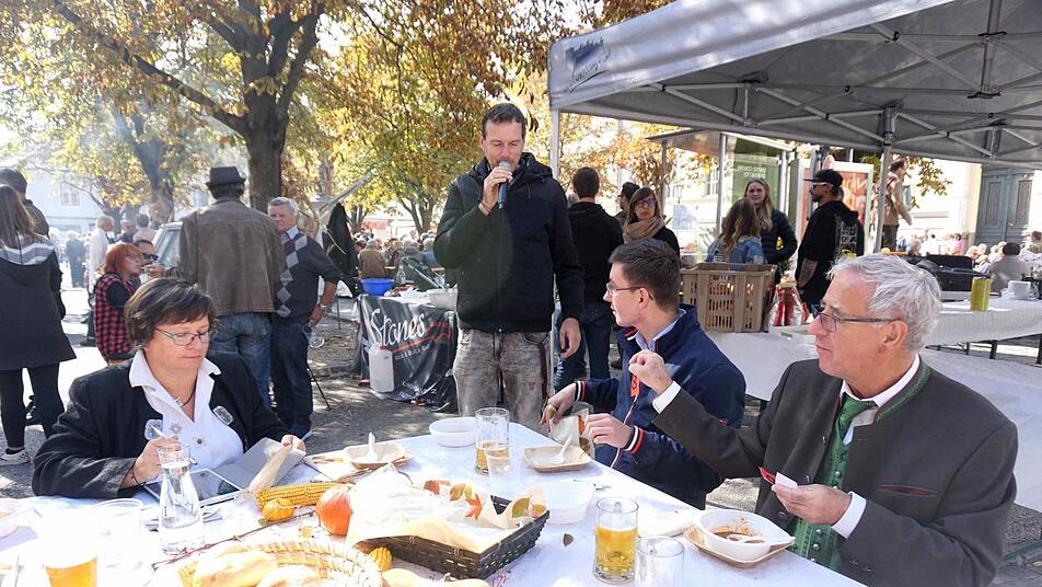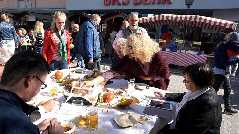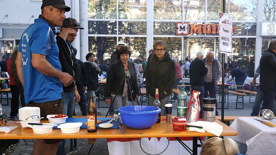Der Herzogenauracher Bürgermeister hielt tapfer durch, als ihm Kostprobe nach Kostprobe serviert wurde. Dann konnte er tief aufatmen, nachdem ihm die letzte Schale vorgesetzt worden war. Nach jeder Kostprobe wurden die Punkte von 1 bis 10 abgegeben und akribisch am Rechner erfasst. Vor allem für die Besucher auf dem Weiherplatz, auf dem gleichzeitig der Wolfsberger Herbst stattfand, war es eine Riesengaudi und jedes Team hatte auch eine eigene Fangruppe, die ihr Team mit gut gemeinten Ratschlägen unterstützten.
