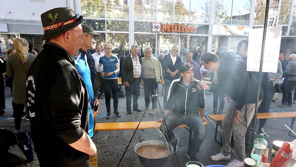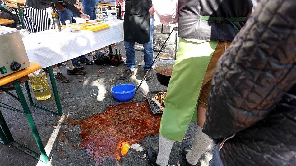Die größte Fangruppe hatten die Herzogenauracher Kerwasburschen, schließlich waren zahlreiche Herzogenauracher zum 50-jährigen Städtepartnerschaftsjubiläum mit angereist. Nebenbei erfüllte der ungewöhnliche Wettbewerb auch einen guten Zweck, die Teams verkauften eine Portion Gulasch für drei Euro und unterstützten damit eine caritative Organisation in der Herzogenauracher Partnerstadt. Nach kurzer Zeit hatten die Teams ihre Portionen an den Mann oder Frau gebracht, denn Dank des herrlichen Wetters und "Wolfsberger Herbstes" des Stadtmarketings war der Weiherplatz zur Mittagszeit überfüllt. In diesem Jahr reichte es für die Kerwasburschen nicht zu einem Platz unter den Top Fünf, aber sie nahmen es mit Humor.