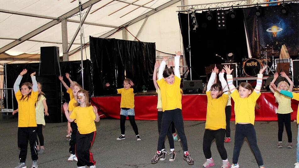 Der Regen trieb dann aber alle Sportler und Gäste ins Zelt, wo die kleineren SCA- Kids der Abteilung Kinderturnen - einstudiert von Susanne Plum und Claudia Thomas - den Körperteilblues aufführten. Die größeren sowie die Einradkinder begeisterten mit dem "La-Ola-Tanz" alle Gäste.