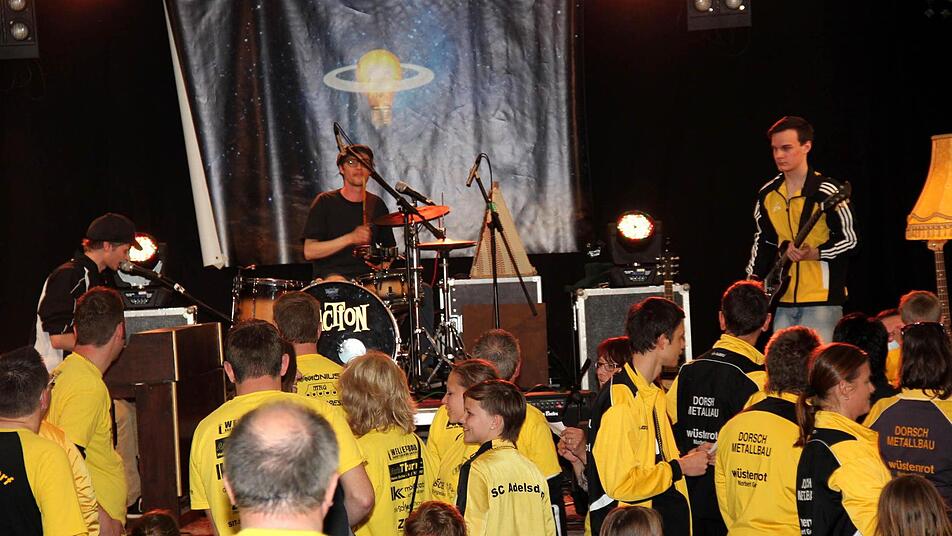 Zum Glück hielt das Wetter fast bis zum Ende des Promifußballturniers gegen 18 Uhr. Die Adelsdorfer Piano-Rockband "Reaction" (Michael Kießling, Peter Geier, Bastian Almosdörfer) stellte ihre selbst komponierte SCA-Hymne "Die unendliche Geschichte" - eine Welturaufführung - vor und bekam tosenden Applaus.