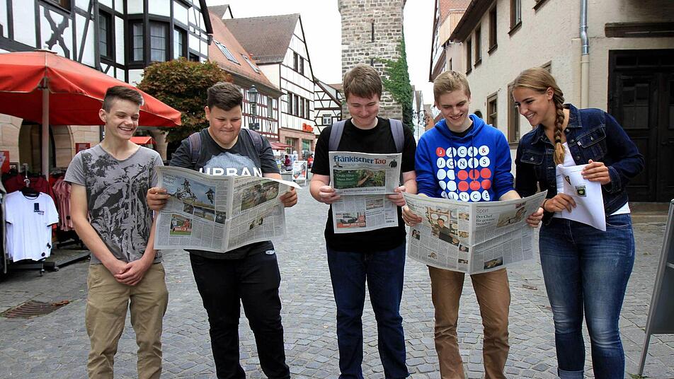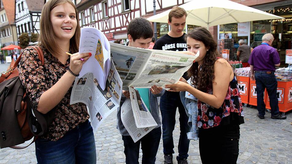 Die neuen Auszubildenden der Schaeffler-Gruppe wurden auf eine Stadtrallye geschickt. Eine der Stationen war auch der Service-Point des Fränkischen Tags.