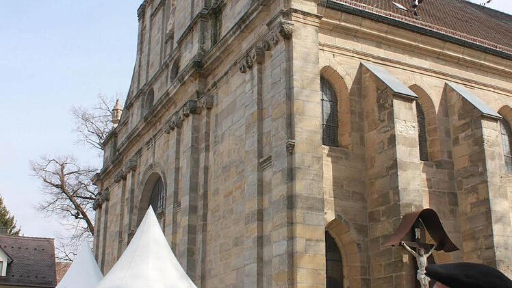 Nach einigen "Streifschüssen" durch über dem Hauptportal nistende Störche sollen Zeltdächer die Besucher der Höchstadter Stadtpfarrkirche St. Georg schützen.