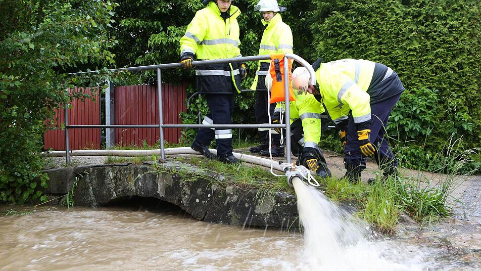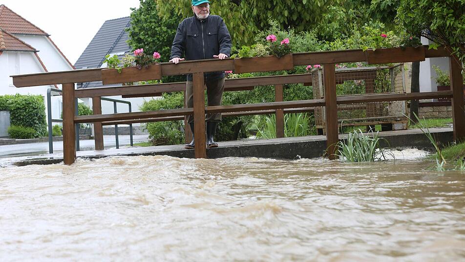Nach dem starken Regen seit Donnerstagabend gibt es in weiten Teilen Frankens Hochwasser. In Igelsdorf trat der Schlangenbach über die Ufer und setzte mehrere Häuser unter Wasser. Die Ausfahrt Baiersdorf-Nord auf der A73 (Nürnberg in Richtung Bamberg) ist wegen Hochwasser gesperrt.