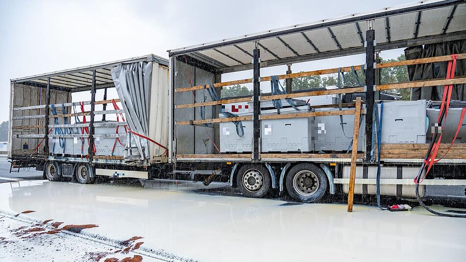 Bei Unfall auf A3 bei Erlangen: Behälter mit Milch beschädigt und ausgelaufen