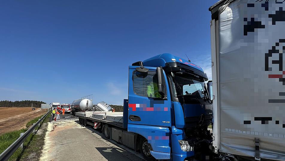 Nach einem Verkehrsunfall mit vier Lastkraftwagen am Donnerstag (27. April 2023) um 09.20 Uhr ist die A3 ab der Anschlussstelle Pommersfelden in Fahrtrichtung Nürnberg komplett gesperrt.