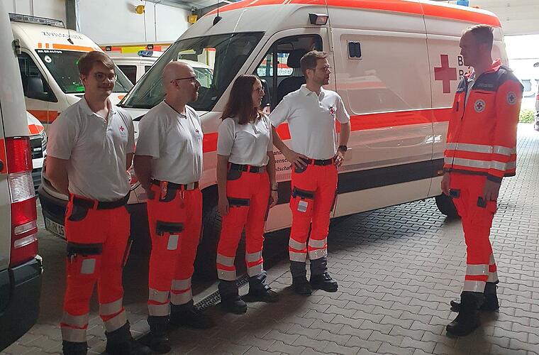 Nachdem die Regierung von Schwaben um Hilfe im Bereich Günzburg gebeten hatte, fuhren freiwillige Helfer der Bereitschaft des Bayerischen Roten Kreuzes in Erlangen-Höchstadt am Sonntag (2. Juni 2024) mit zwei Notfall-Krankenwagen zu dem Einsatz.