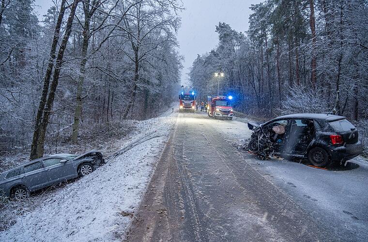 Bei Pommersfelden hat es am Donnerstagnachmittag (2. Januar 2024) einen schweren Unfall gegeben. Dabei kollidierten zwei Fahrzeuge auf schneebedeckter Straße. Ein 18-Jähriger und eine 56-Jährige wurden dabei schwer verletzt.