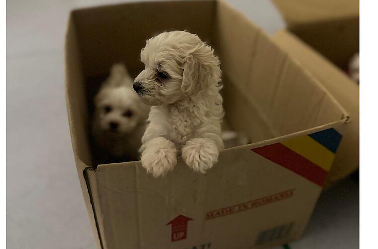 Bei der Kontrolle wurden zwei ungesicherte Kartons auf der Rücksitzbank festgestellt, in welchen sich jeweils zwei Hundewelpen befanden.