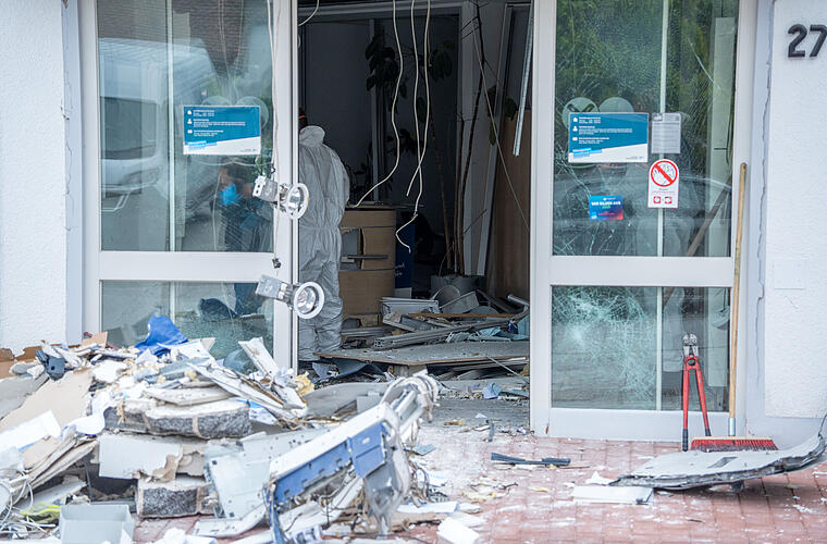 In der Nacht auf Montag, den 7. Juli 2025, gegen 2.40 Uhr, wurde ein Geldausgabeautomat der Volks- und Raiffeisenbank in der Eisenstraße in Eckental (Kreis Erlangen-Höchstadt) mit Sprengstoff gesprengt. Das teilte das Bayerische Landeskriminalamt (BLKA) am Morgen mit.
