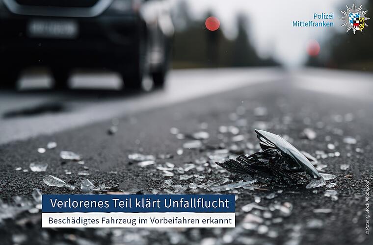 Anlässlich von erforderlichen Verkehrsmaßnahmen infolge eines Verkehrsunfalls am 12. März 2026 an einer Bushaltestelle passierte ein weißes Auto die Polizeibeamten an der Unfallstelle, welches einen augenscheinlich passenden Unfallschaden hatte. Im Zuge der späteren Ermittlungen an der Halteranschrift konnte festgestellt werden, dass das aufgefundene Fahrzeugteil zum Sachschaden am Fahrzeug passte.