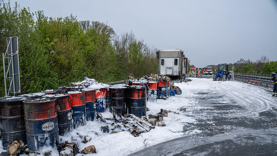 Einsatzkräfte mussten wegen eines brennenden Lkw auf der A73 bei Erlangen ausrücken. Der 40-Tonner hatte Fässer mit Motoröl geladen. Auf der Autobahn kam es zu erheblichen Problemen.