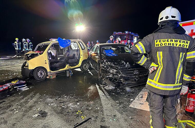 Die Feuerwehr fand beim Eintreffen an der Unfallstelle zwei Autos vor: In einem Kleinwagen mit drei Personen war der Fahrer eingeklemmt. Zwei weitere Personen auf den Rücksitzen waren eingeschlossen. Das zweite Fahrzeug war mit zwei Personen besetzt, die selbstständig aus dem Fahrzeug herauskamen.