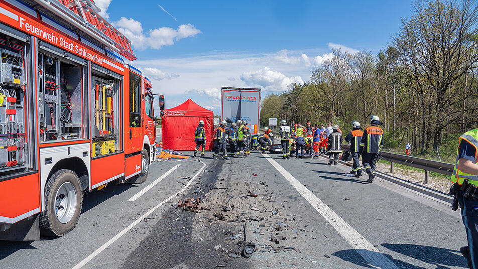 Die Autobahn wurde nach dem Unfall in Fahrtrichtung Nürnberg für mehrere Stunden vollständig gesperrt. Der Verkehr sei ab Schlüsselfeld von der A3 geleitet worden, hieß es. Erst am Abend war die Autobahn wieder freigegeben, wie ein Sprecher der Polizei mitteilte. Den Angaben zufolge waren neben der Polizei und dem Gutachter rund 65 Feuerwehrleute sowie acht Mitarbeiter des Rettungsdienstes vor Ort im Einsatz.