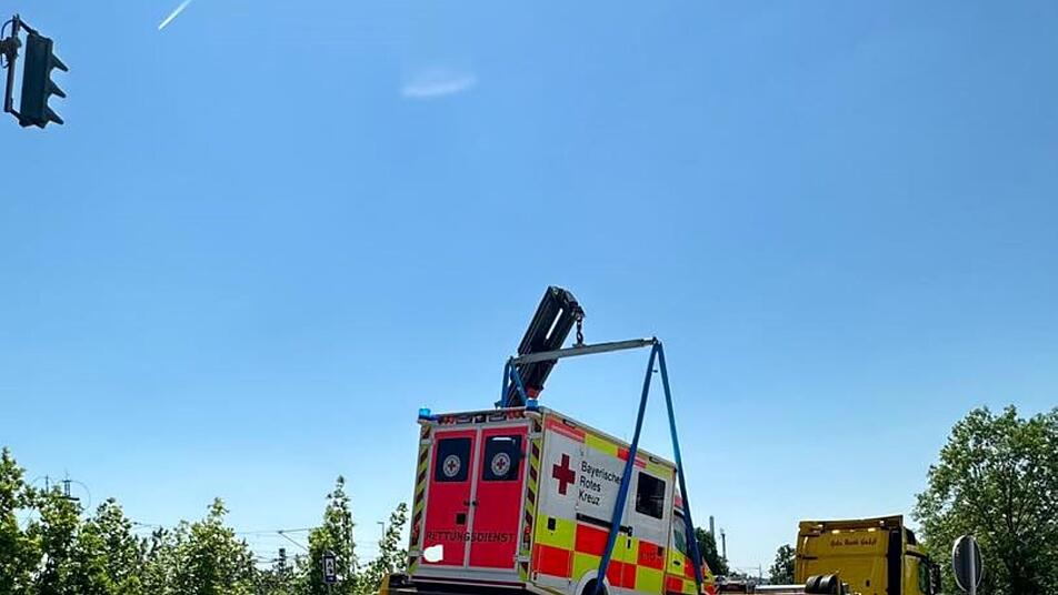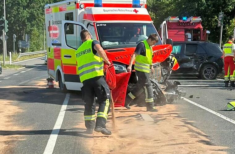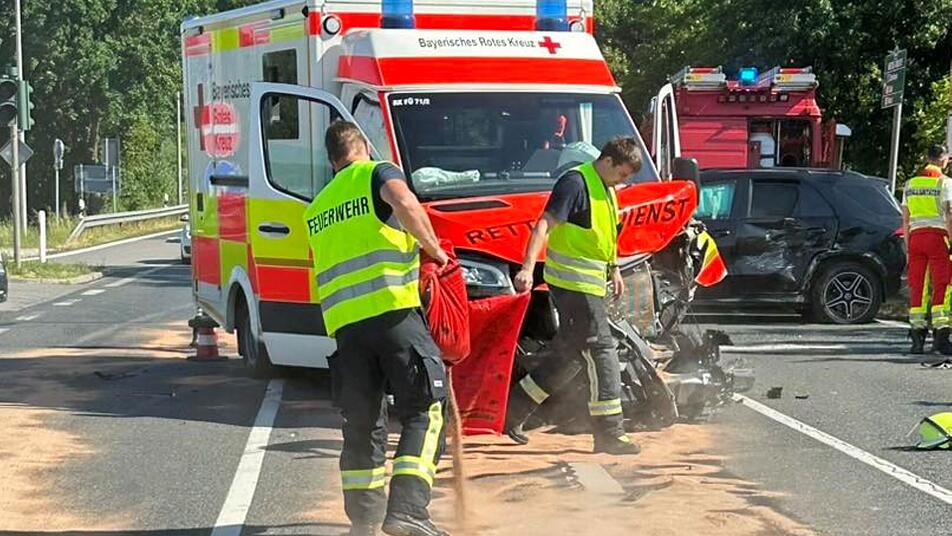 An der A73 bei Erlangen ist ein Rettungswagen in einen Unfall verwickelt worden. Er stieß frontal mit einem Auto zusammen, als er bei Rot über die Ampel fuhr.