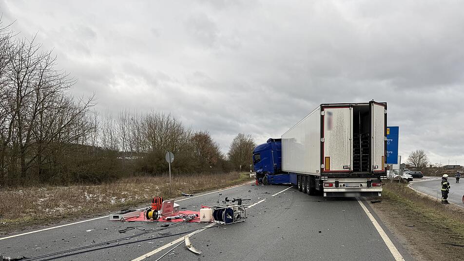 Ein Mann stirbt, als auf einer Bundesstraße im Kreis Erlangen-Höchstadt ein Kleintransporter mit einem Lkw kollidiert. Ein Verletzter kann sich selber aus seinem Fahrzeug retten. Ein Sprecher bezeichnet die Unfallstelle als "Trümmerfeld".