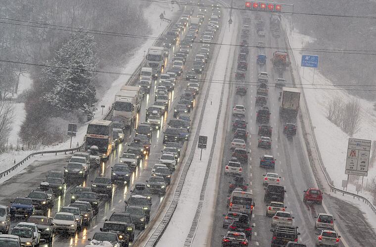 Im Anschluss kam es zu einer teuren Kettenreaktion: Auch die nächsten sechs Autos fuhren paarweise aufeinander auf, weswegen die Polizei von insgesamt vier Auffahrunfällen spricht.