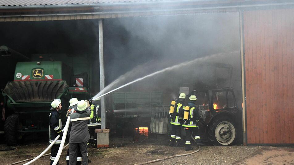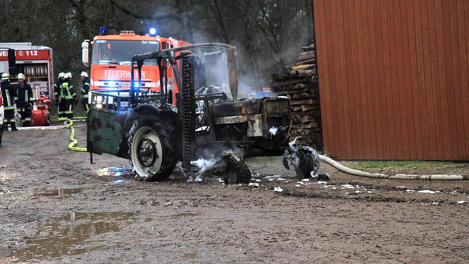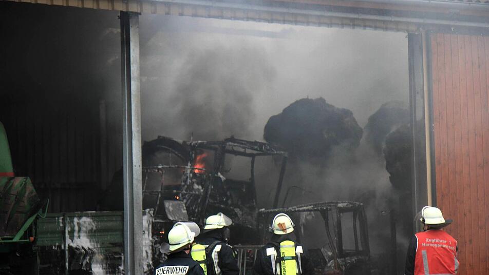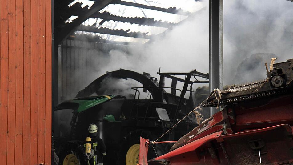 Ein älterer Traktor und ein Maishäcksler sind am Montagvormittag bei einem Brand im Emskirchener Ortsteil Eckenberg, einem Nachbarort von Oberreichenbach, ein Raub der Flammen geworden.