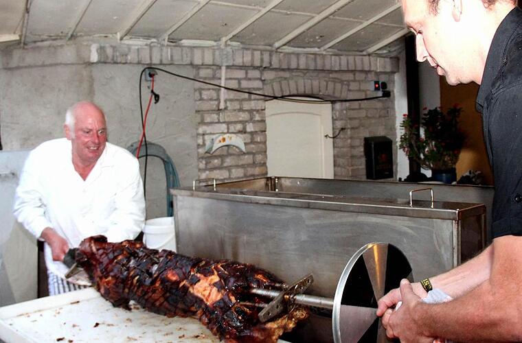 Fahrlehrerin als Gast Die Oeds waren bereits bei der ersten Reisegruppe 1994 mit in Brasilien und seitdem nehmen sie auch regelmäßig Gäste auf. "Uns würde was fehlen, wenn wir leer ausgingen", gesteht Betty Oed. Diesmal haben sie Celi Lamb als Gast. Sie ist Fahrlehrerin mit einer eigenen Fahrschule. "Die Deutschen fahren besser, aber auch schneller als wir. Außerdem haben sie Angst vor der Polizei", meint sie fachkundig. "Obwohl auch wir Anschnallpflicht haben, benutzen die wenigsten von uns den Gurt." Sie hat sich in Deutschland sehr wohl gefühlt. "Die Gruppe ist so harmonisch, die Organisatoren haben perfekt gearbeitet und die Gastgeber sind sehr lieb und freundlich", schwärmt Celi. Zur Unterhaltung der Gäste, die das von Herbert Fischer zubereitete Spanferkel genießen, musizieren die Aischgründer Wirtshausmusikanten und dazwischen schwingt der Volkstanzkreis Steigerwald unter Leitung von Konrad Heimann gekonnt das Tanzbein.