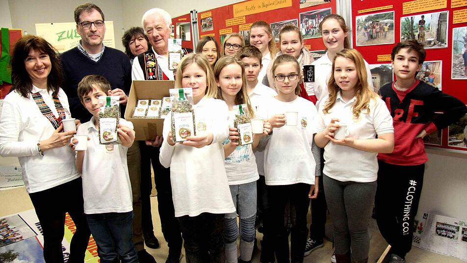 www.zubza.de) wurde freigeschaltet und Michael Raabe vom Greuther Teeladen der Martin Bauer Group stellte den "Zubza-Tee" vor. Die Martin Bauer Group kreierte zwei Teesorten (Fränkischer Kräutertee und Franken trifft Indien) mit einem eigenen Logo, die beiden Teesorten werden die Zubzas ab jetzt bei ihren Aktionen immer dabei haben. "Das Thema ist uns nicht ganz fremd, wir spüren die Begeisterung der Zubzas und unterstützen die Aktion sehr gerne", erklärte Michael Raabe beim Ausschenken der beiden Teesorten. Für ihre aktive Unterstützung verlieh Sprecher Ernst Klimek zudem die Zubza-Medaille an Schulleitern Petra Pausch. Im November des vergangenen Jahren reiste mit Bürgermeister Heinrich Süß, Schulleiterin Petra Pausch, Vertreter der katholischen und evangelischen Kirchengemeinde mit den Projektgründern Anita und Ernst Klimek eine Delegation ins Nagaland.