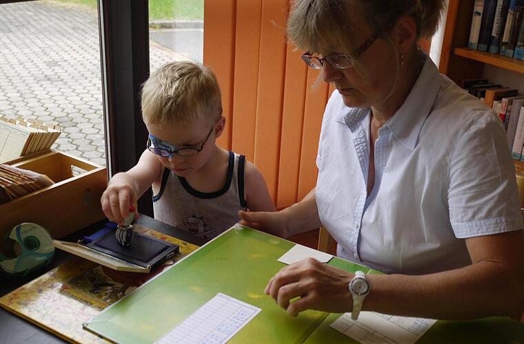 Familie Lösch ist zu Fuß da, denn sie wohnt direkt in Kleinweisach. "Oft müssen die Leute aber mit dem Auto zu uns fahren", sagt Marita Römer, die Büchereileiterin, die selbst in Frickenhöchstadt wohnt.