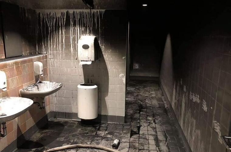 Nach dem Brand eines Mülleimers in der Toilette war diese am Donnerstagvormittag stark verrußt worden und der Feuermelder schlug an. Darauf hin wurde das Schulhaus für kurze Zeit evakuiert (der FT berichtete).
