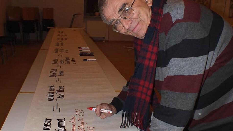 Im Erdgeschoss des Pfarrzentrums schrieben die Teilnehmer ihre Gedanken und Aussagen zu den einzelnen Bitte im Vater Unser auf eine Schriftrolle.