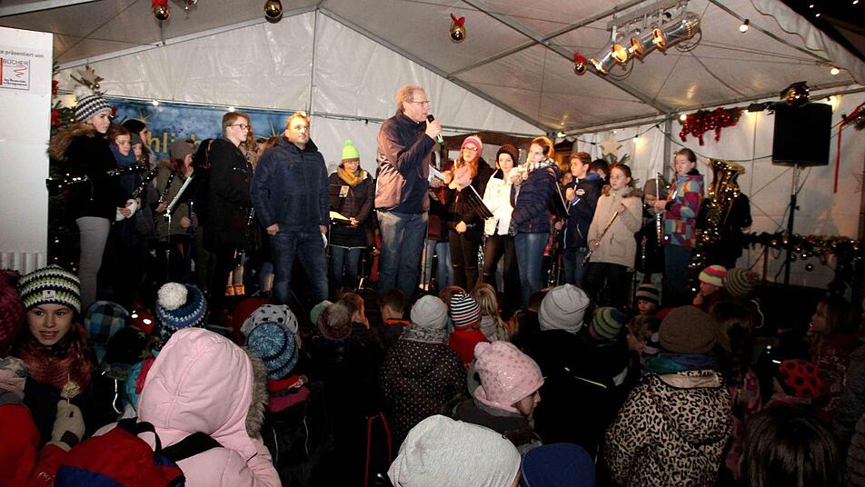 Bereits einen Tag vor der offiziellen Eröffnung, beim Lebendigen Adventskalender und dem anschließenden "After Work Treffen" stand der Marktplatz im Mittelpunkt. Mit dem feierlichen Prolog des Christkindes, Theresa Burkhardt und der musikalischen Umrahmung durch die Stadtjugendkapelle unter der Leitung von Andrea Kürten eröffnete Bürgermeister German Hacker den Weihnachtsmarkt im Herzen der Stadt. Zuvor begrüßte Heiko Dilger, Vorsitzender der Förder- und Werbegemeinschaft die vielen Besucher auf dem Marktplatz. Bürgermeister German Hacker wies auf die 31 Buden hin, "mehr geht nicht mehr" und forderte die Besucher, viel zu Essen und zu trinken und vor allem auch zum Kauf, denn die Mehrzahl der Buden werden für einen karitativen oder sozialen Zweck betrieben.