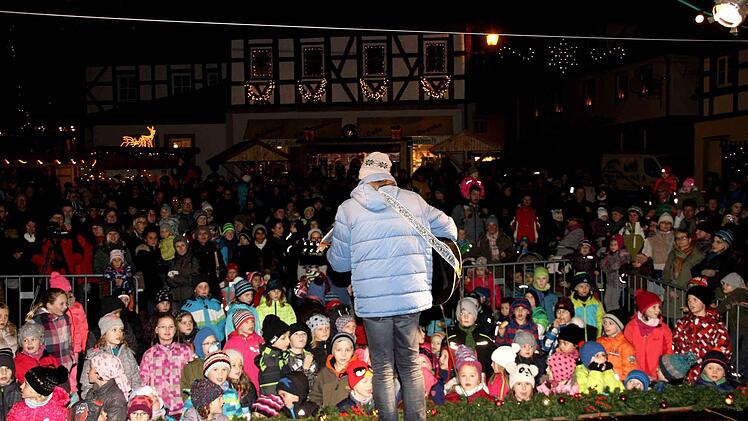 Durch das zweite Türla beim Lebendigen Adventskalender trat mit Stephen Janetzko einer der bekanntesten und erfolgreichsten Kinderliedermacher. "Der Winter ist da", hieß das Programm seiner Kinderlieder zum Mitsingen und Mitmachen. Die Kinder sangen begeistert mit und der Liedermacher animierte auch die Erwachsenen zum Mitsingen. Zum Schluss durften die Kinder dann auf die Bühne zum Mitmachtanz.