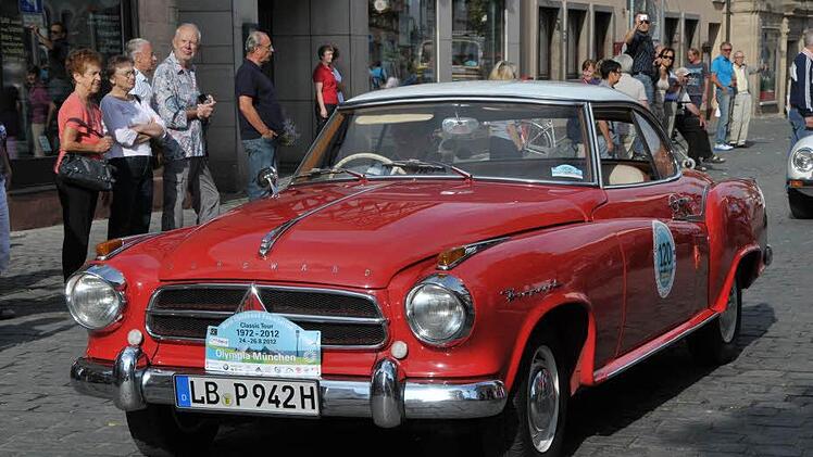 Eine Reminiszenz an Olympia 1972 war die Rallye zeitgenössischer Karossen. Sie starteten in Herzogenaurach und der Endpunkt der Fahrt war das Stadion in München.