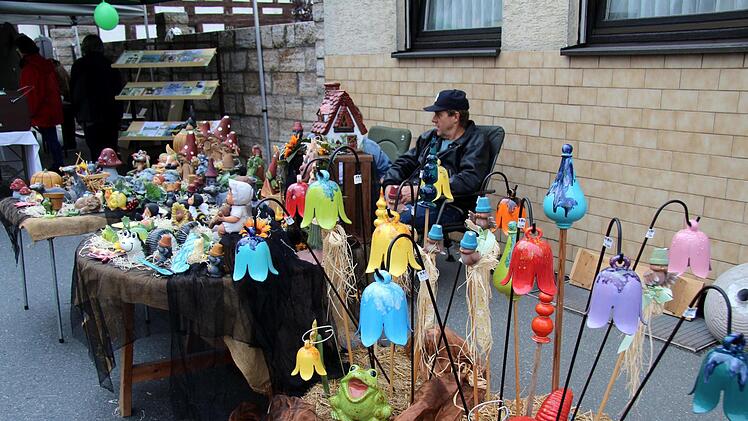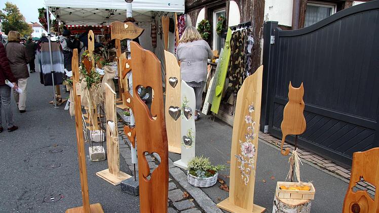 An den Ständen entlang der Hauptstraße gab es filigranen und bunten Schmuck für Hals und Arme ebenso wie Schmückendes aus Holz für Haus und Garten, bunte Stoffe und Tischschmuck. Aber auch bei Dekoartikeln für Haus und Garten konnten Kauffreudige viel Interessantes und fantasievoll von Hobbykünstlern Gestaltetes entdecken: Figuren und Amphoren aus Metall, Keramik oder der Jahreszeit angepasst farbige Trockenkränze und Gestecke.