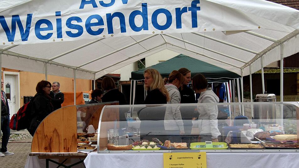 Vom Kreisverkehr entlang der Hauptstraße bis auf den Gimberlein-Parkplatz präsentierte sich Weisendorf mit einer Vielfalt von Angeboten. In der Hauptstraße zwischen den Buden und Ständen waren zahlreiche Besucher unterwegs, flanierten, schauten und kauften — trotz des trüben Wetters. "Es gab schon mal schlechteres Wetter, und ich hoffe es bleibt von oben trocken", erinnerte der Bürgermeister an das vergangene Jahr.