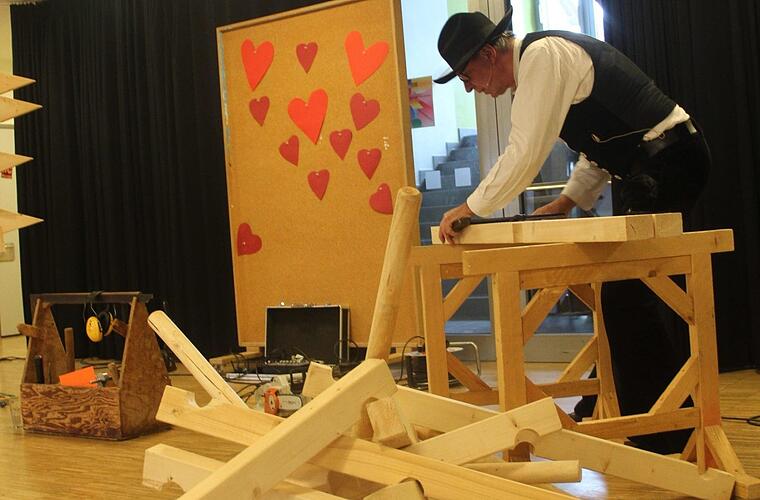 Balmer merkt, dass er etwas an seinem Leben ändern muss und beginnt noch einmal eine Lehre als Zimmerer. Dabei findet er seine wahre Berufung und wieder mehr Zufriedenheit. Nachdem das Stück zu Ende ist, nimmt sich Betz Zeit, noch einige Fragen zu beantworten. Stolz und vor allem glücklich sagt er: "Den coolsten Beruf habe ich." Aber warum? Das und wie er auf die Idee für "Mit Hand und Herz" gekommen ist, hat er dem Fränkischen Tag im Interview beantwortet. Herr Betz, Sie sind Zimmerermeister. Wie sind Sie zu diesem Handwerk gekommen? Richard Betz: Ich habe erst Architektur studiert, aber auch währenddessen immer etwas mit Holz gemacht. Dann habe ich auch mit einer Lehre begonnen. Nach meinem Studium arbeitete ich noch in einem Architekturbüro, habe mich dann aber für meinen eigenen Betrieb und die Zimmerei entschieden. Was macht Ihnen an dem Beruf Spaß? Die Vielfalt des Berufs: Das Aufgabengebiet ist riesig. Es wird nie langweilig. Bei jeder neuen Aufgabe wird man wieder gefordert. Und, dass man sieht, was man gebaut hat. Auf Baustellen haben wir zufällig festgestellt, dass wir immer an so einem Ort Pause machen, dass wir unser Werk sehen können. (lacht) Außerdem ist es schön, in so kleinen Teams zu arbeiten. Warum ist das Handwerk so wichtig? Das sind gefragte Stellen, heute muss man lange auf Handwerker warten. Das Handwerk muss mit dem Studium gleichstellt werden. Außerdem ist es für Jugendliche eine große Chance und sie werden auf ihrem Weg ins Erwachsenenleben begleitet. Am Anfang ist es für die Auszubildenden immer eine Herausforderung. Deshalb habe ich im Theaterstück vieles von meinem ersten Arbeitstag miteinfließen lassen. Aber mit jedem Monat können sie mehr und werden stolzer. Aktuell habe ich drei Lehrlinge und es ist eine wahre Freude.