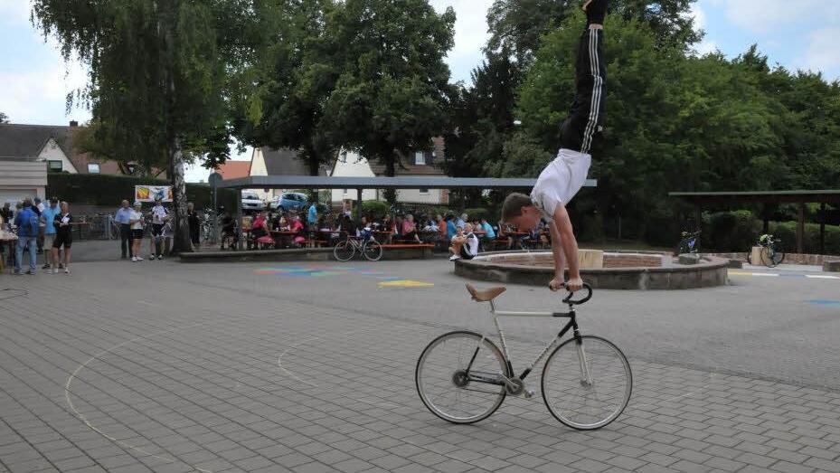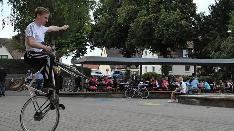 Bei einem abwechslungsreichen Rahmenprogramm konnten sich die Radler mit Spezialitäten vom Grill und verschiedenen Getränken stärken. Höhepunkt im Rahmenprogramm war der zweimalige Auftritt des Kunstradfahrers Manuel Moser von der Soli Herzogenaurach.
