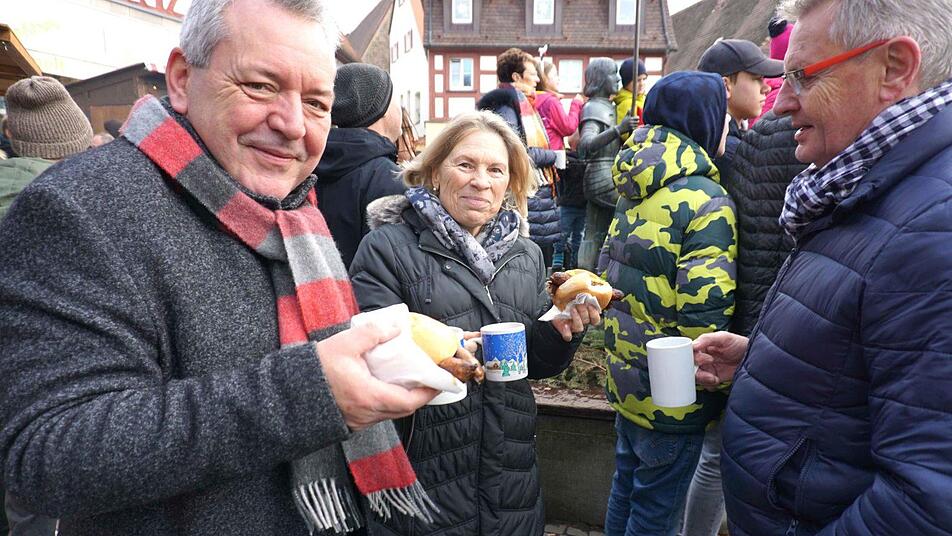 . Bratwürste und Glühwein waren auch am letzten Tag beliebt und vor den beiden Buden hieß es erst mal anstehen. Denn die Herzogenauracher hatten Glück - nach dem heftigen Regen am Vormittag blieb es zur Mittagszeit trocken und dementsprechend kamen viele Menschen in die Innenstadt.
