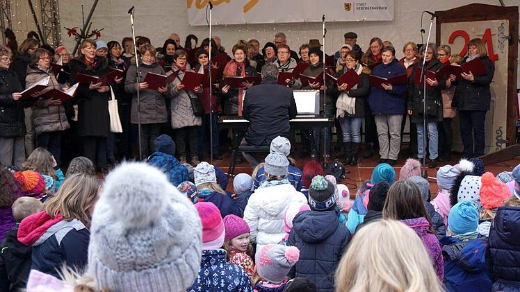 Auch an den Vortagen und selbst bei regnerischem Wetter war der Marktplatz um 17 Uhr immer gut gefüllt gewesen. So zeigten sich auch Judith Jochmann und Andrea Pöltl vom Amt für Stadtmarketing und Kultur der Stadt Herzogenaurach mit den 24 Tagen Lebendiger Adventskalender zufrieden - sowohl mit dem Besuch als auch dem Programm.