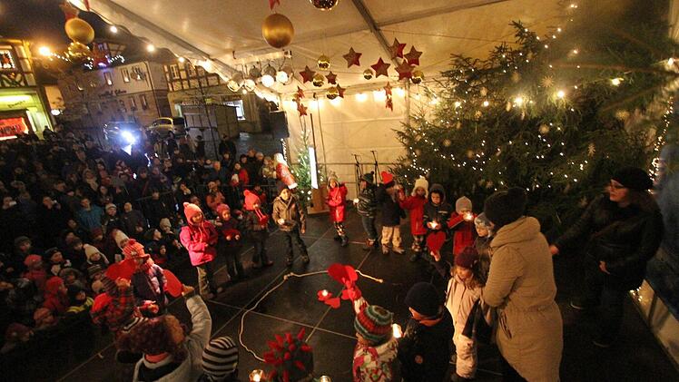 Wieder einmal war es ein Kindergarten, der die vielen Besucher auf dem Marktplatz überzeugte. Die Niederndorfer des Kinderhauses waren gestern dran, um mit Liedern und Tanz das Adventstürchen zu füllen. Das Lied mit den vielen Strophen hatten die Kleinen komplett auswendig gelernt. Dass beim Herzentanz niemand aus der Reihe tanzte, war ebenso wie die Textsicherheit beim Lied den vielen Übungsstunden zu verdanken. Netterweise war auch der Himmel "sternenklar" und sorgte für eine angenehme Stimmung auf dem Marktplatz.